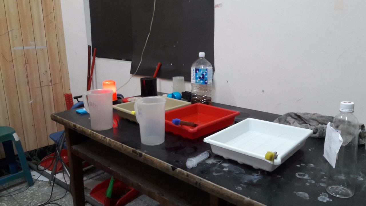 曝光完後,就是要將相紙放入藥水當中顯影。